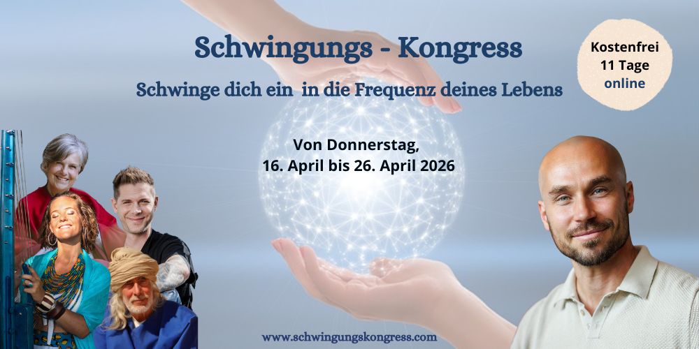 Melde Dich gleich kostenfrei an zum Schwingungs-Kongress, schwinge Dich ein in die Frequenzen Deines Lebens.